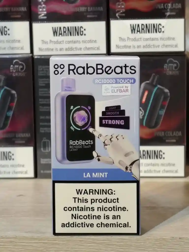 Vapeador Elfbar Rabbeats 10.000 vapeadas sabor La Mint pantalla tactil indicadora de nivel de bateria y esencia graduable intensidad de vapeo. Advertencia: este producto contiene nicotina una sustancia adictiva. PROHIBASE SU VENTA A MENORES DE EDAD. Antes de consumir leer indicaciones y contraindicaciones del producto