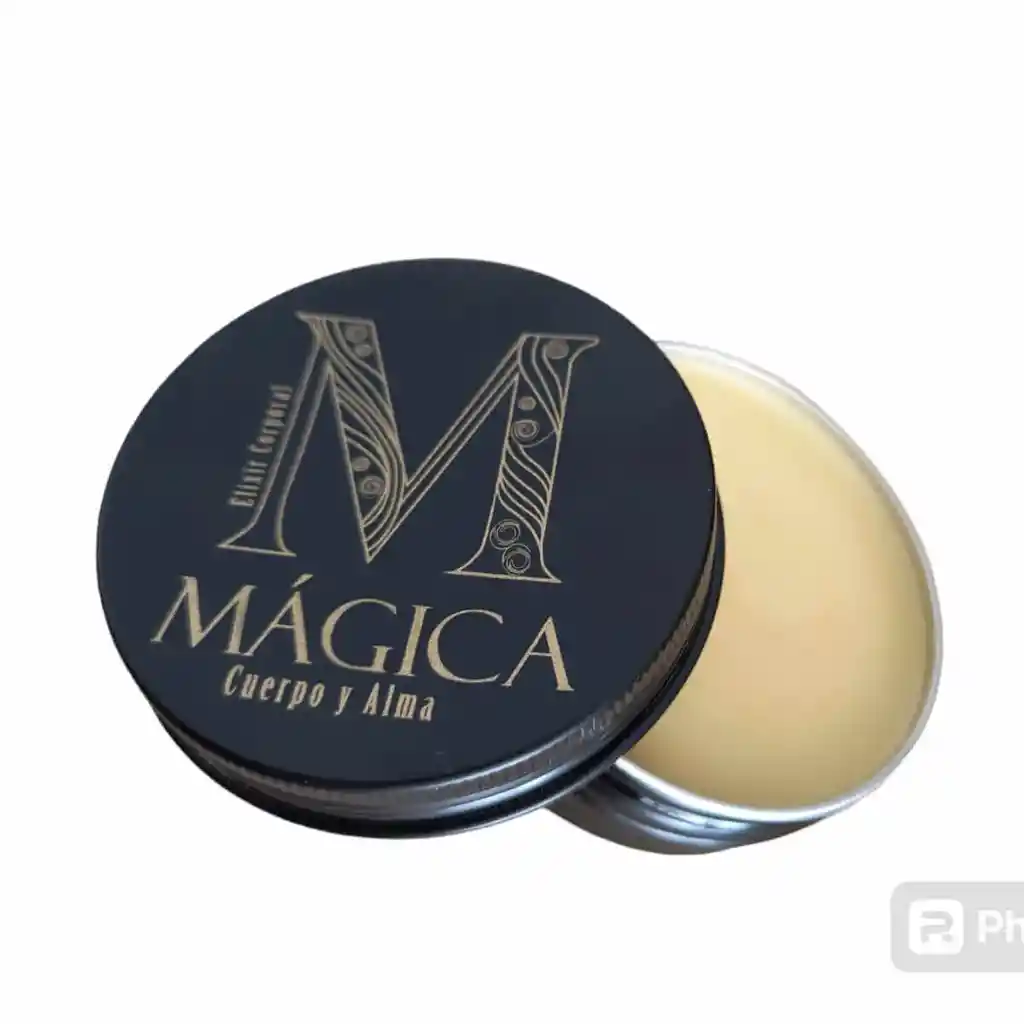 El elixir facial y corporal Mágica es elaborado con ceras, aceites naturales y aceites esenciales . Es 100% natural – Sin derivados del petróleo – Sin conservantes ni fragancias artificiales. Es un elixir ya que no se puede llamar pomada, crema o hidratante. Son varios productos en uno solo. Para el rostro es Anti edad con sensación de alivio, ayuda a relajar y a calmar los sentidos. Para el cuidado del rostro ayuda a combatir manchas, acné y afecciones de la piel y mejora la elasticidad y unifica el tono de la piel Para el cuerpo como crema corporal ayuda a mitigar las tensiones del día a día, favorece la restauración y regeneración de la piel. dejándola suave, tersa y radiante. Su fórmula rica en antioxidantes y emolientes se absorbe rápidamente, promueve la producción de colágeno, sin dejar sensación grasosa, proporciona una hidratación intensa en todo tu rostro embelleciéndolo y relajándolo. Ingredientes: Cera de Karité, Cera de Soya, Cera de abejas de alba, Aceite de Aguacate, Aceite de Naranja, Aceite de Romero, Caléndula, CBD, Vitamina E, Aceite de Girasol, Aceite de Almendra Cómo actúan los aceites: La Cera de Karité, la cera de abejas, el aceite de almendras y el Aceite de Aguacate: Nutren profundamente, restauran la barrera cutánea y calman irritaciones, dejando la piel suave, tersa, radiante. Combinan su poder hidratante y anti edad, estimula la producción de colágeno, mejorando la elasticidad de la piel. El CBD (Cannibidiol), el aceite de Caléndula y el aceite de Romero, ayudan en sinergia a calmar y desinflamar las afecciones de la piel, mejorando la apariencia de la piel. El Aceite de Naranja, aceite de girasol, rejuvenece y unifica el tono de la piel, reduciendo manchas, reduce líneas de expresión. Sus propiedades antimicrobianas y antioxidantes limpian profundamente, eliminando impurezas y células muertas. Su cálido aroma a naranja te envolverá en una sensación de relajación y alivio que estimula los sentidos. Vitamina E y Aceite de Aguacate: Combinan su poder hidratante y anti-edad, estimulando la producción de colágeno y mejorando la elasticidad de la piel. La delicada fórmula de nuestro elixir permite que los anteriores ingredientes se combinen y actúen sobre la piel ya que penetran profundamente gracias a su tamaño molecular, actuando directamente sobre las células. Modos de Uso: Aplicarla en el rostro en una fina capa en la mañana y noche. 7 formas de usar el elixir corporal Mágica: 1) En el día antes del maquillaje como protector de la piel, mejora la apariencia de la piel y ayuda a evitar las manchas por el maquillaje, como rutina de belleza. 2) En la noche, luego de limpiar el rostro, para nutrir la piel durante la noche la piel se regenera y obtendrá una piel más suave y radiante 3) En manchas o zonas opacas, aplica diariamente una pequeña cantidad en la zona que deseas aclarar, reparar o mejorar la apariencia de la piel 4) En contorno de ojos aplica una pequeña cantidad con toquecitos, para tratar líneas de expresión, arrugas, ojeras o manchas. 5) Como Mascarilla nutritiva 1 vez a la semana aplica una capa abundante, luego de limpiar el rostro, deja actuar por 15 a 20 minutos y luego retira con un paño húmedo y tibio para dejar limpio el rostro. 6) Como Protección para después de la afeitada: aplica en pequeña cantidad en todo el rostro o lugar deseado, para hidratar y que actúe como agente emoliente 7) Crema protectora en el día y para proteger tu piel de los agentes contaminantes, rayos UV y cuidar tu piel de forma natural. Déjate envolver por el poder de la naranja y redescubre el placer del autocuidado natural. 100% natural – Sin derivados del petróleo – Sin conservantes ni fragancias artificiales. Tamaño: 30 g en envase de aluminio reutilizable y caja protectora. Producto colombiano, Elaborado con amor y respeto por tu bienestar.