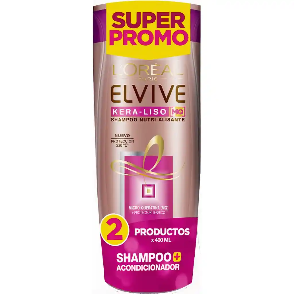 Gracias a su fórmula enriquecida con micro-queratina [MQ] inspirada en la queratina del cabello y su protector térmico, nutre el cabello, realinea fibra a fibra y protege el cabello al alisarlo. Presentación de champú de 400 ml + acondicionador de 400 ml.