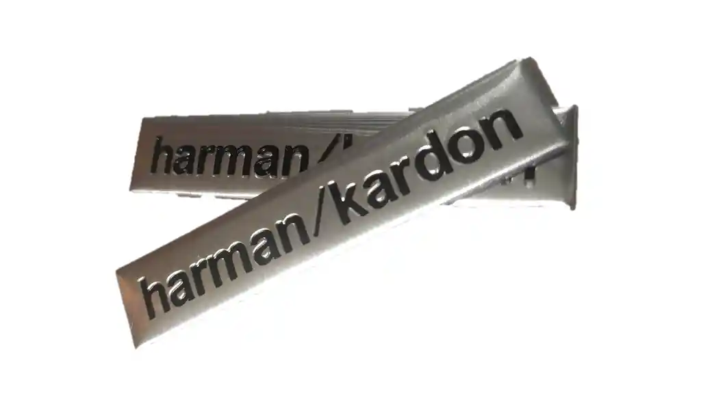 cuatro emblemas harman aluminio 61x12mm cada uno superfici trasera adherible.