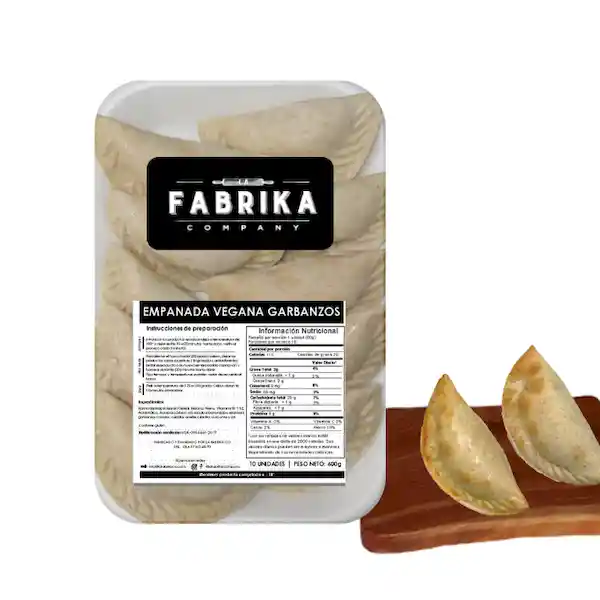 Bandeja. 10 Empanada Integral Vegana de Garbanzo Listas para Hornear o Freír.