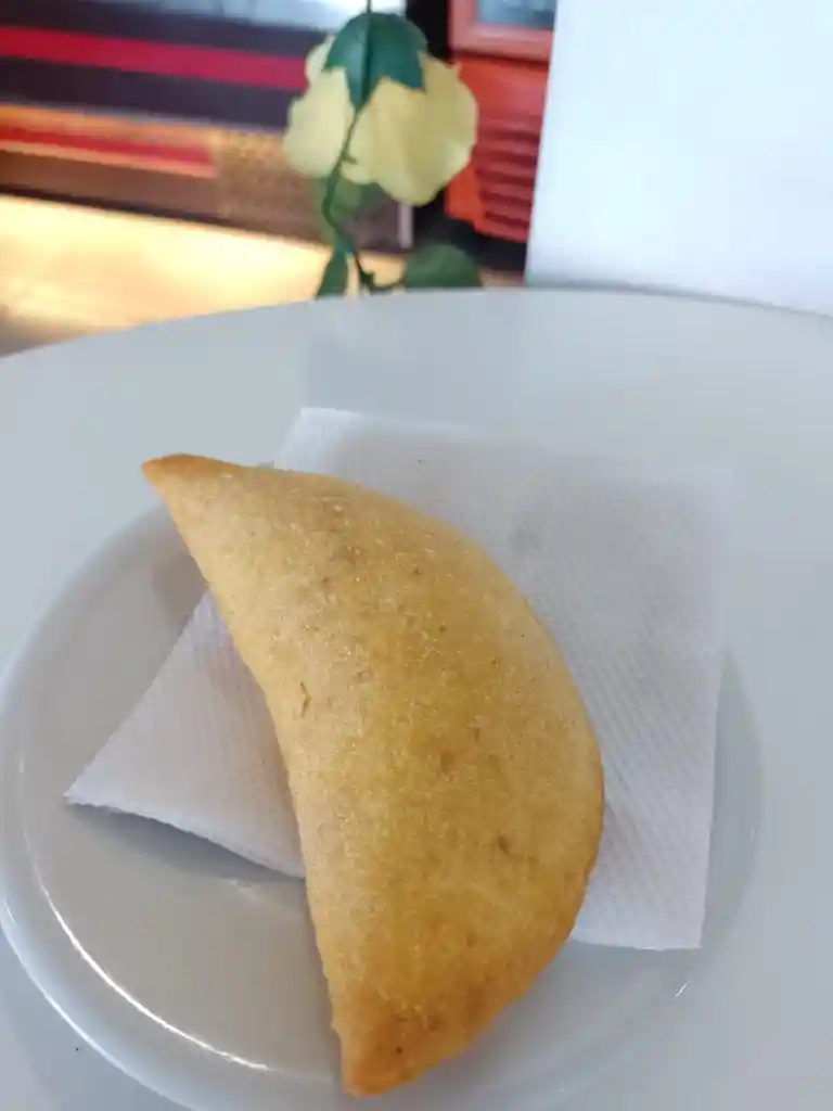 Empanadas con relleno de solo pollo, solo carne, mixta (arroz y carne), lechona (arroz y carne de cerdo), hawaiana (piña, tocineta y queso), pollo con champiñón (pollo + champiñon)