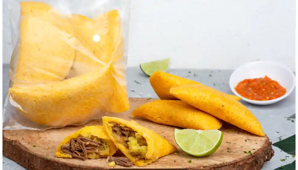 Empanadas de maiz peto precocidas congeladas por 10 unidades paquete de 900 gramos de carne y papa valluna lista para freir o hornear