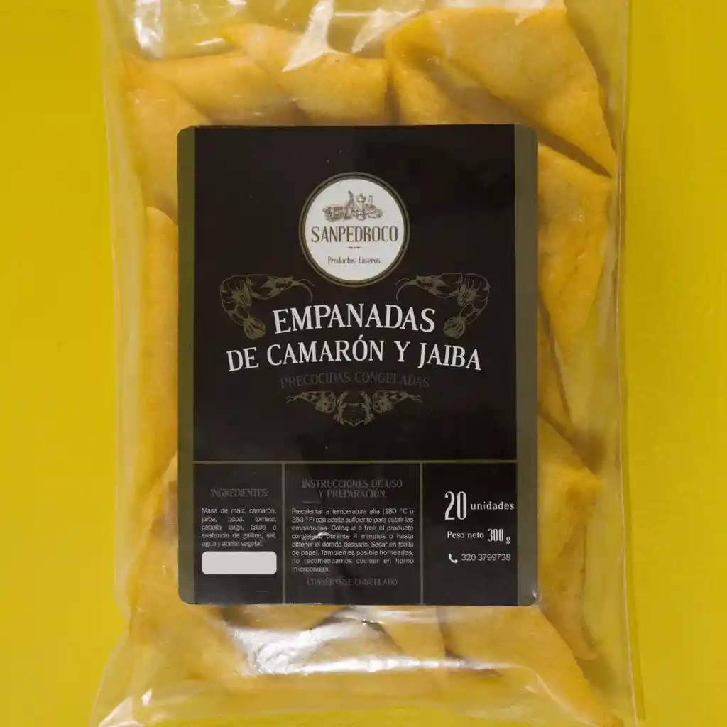 Empanadas precocidas congeladas, hechas de crujiente maíz amarillo, sofrito del pacífico y leche de coco. 10 con relleno de sudado de camarón y 10 con relleno de carne de jaiba.