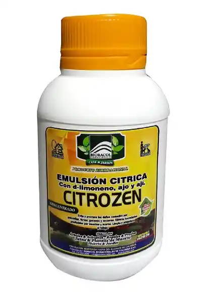 "EMULSIÓN CÍTRICA CON AJO Y AJÍ, para uso en la remoción de acúmulos de cochinillas y escamas, además de la limpieza de restos dejados por estas plagas como azucaramientos, exubias, huevos, larvas y en general sustancias y residuos que afectan la calidad, aspecto estético o duración de la vida útil de las plantas o sus frutos. En la fase posterior a la cosecha habrá muchas unidades de producto que estén afectadas por restos y residuos de plagas como ácaros, áfidos, palomillas y otras muchas plagas que dejan desechos como mudas, heces, polvo, telarañas, huevos viables o no viables, larvas, individuos muertos y demás suciedades causadas por plagas. Bloquea e impide la eclosión de los huevos y el desarrollo de las fases intermedias de las plagas causantes de pérdidas de calidad. "
