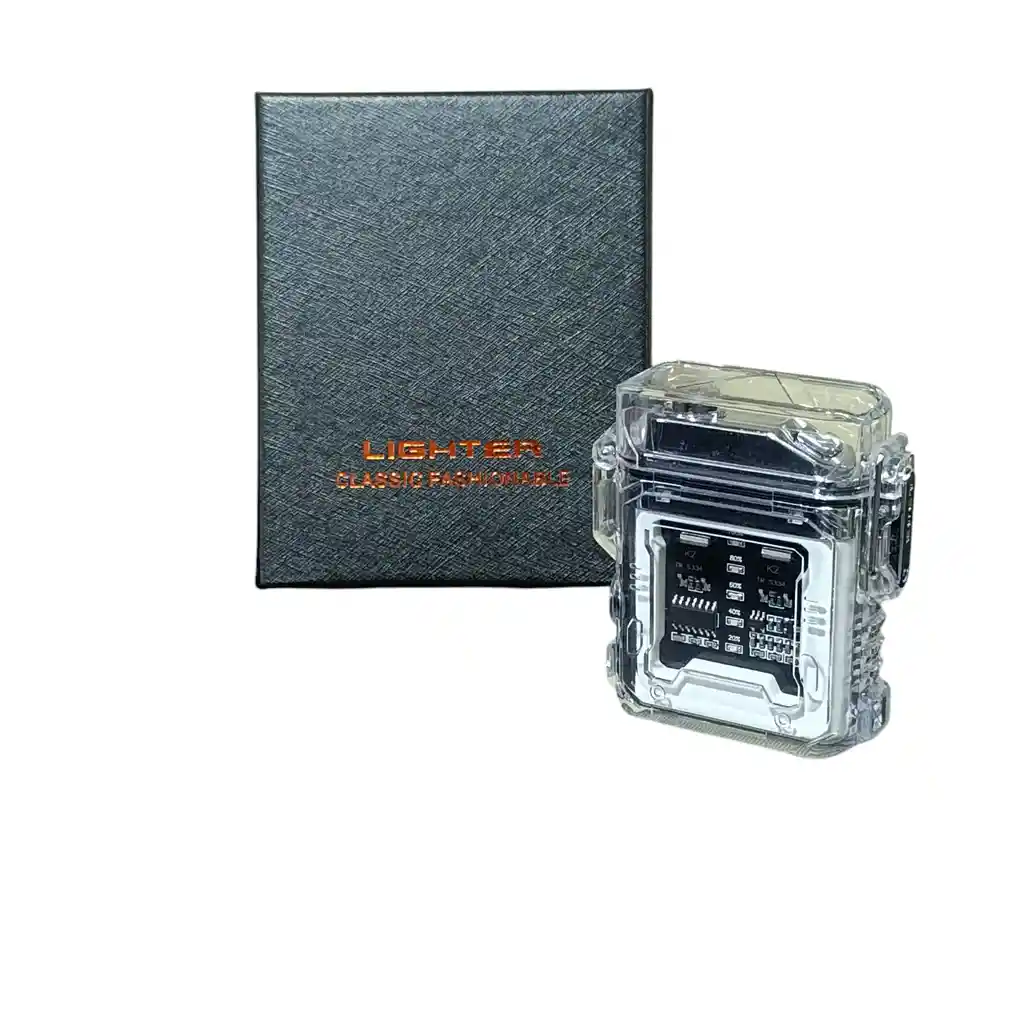 encendedor de plasma transparente USB presenta un diseño innovador y futurista, con sus circuitos visibles. Su construcción resistente al agua es ideal para uso en exteriores y su linterna brinda aún más comodidad. Además del diseño innovador, tiene una linterna LED adjunta.