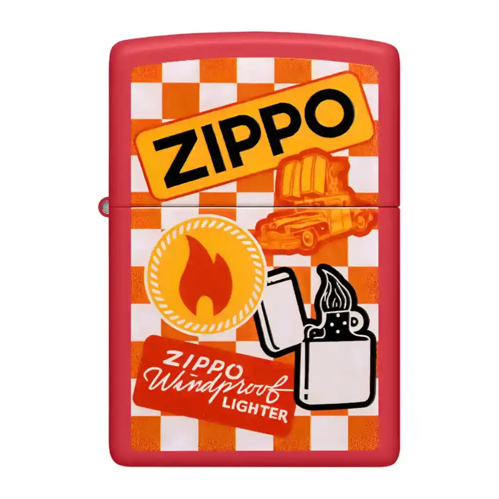 Encendedor Zippo Retro Desgin El Zippo 48998 es un encendedor de acabado Rojo Mate (Red Matte) con un diseño "Retro" que muestra los iconos clásicos de Zippo sobre un fondo a cuadros, presentado en una caja de regalo y con construcción metálica a prueba de viento, hecho en EE. UU., ideal para usar con combustible Zippo, y es recargable para toda la vida, ofreciendo el icónico "click" y garantía de por vida. Características: Largo: 5.3 cm Ancho: 3.8 cm Peso: 56 gr ¿TIENES DUDAS? ¡PREGUNTA!, TE RESPONDEREMOS LO MÁS PRONTO POSIBLE ¡Banimported, calidad y diseño!