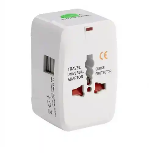 Adaptador Viajero Universal con Dos Puertos USBDescripción:Enchufe adaptador de Cargador Universal para todo el mundoConvierte la toma de corriente cuando viajas a otros paísesAdaptador de enchufe de CA Universal internacional para viajes en todo el mundo AU/REINO UNIDO/EE. UU./UEEnchufe de viaje internacional para Estados Unidos-Reino Unido-Australia-EuropaTodo en uno puede conectar tu aparato eléctrico a todas partes del mundoCompacto y cómodo diseñoProtección contra sobretensionesObturador de seguridadCorriente nominal: 3A-10 (A)Voltaje nominal: 110-250 (V)Material de la carcasa: ABS resistente al fuego respetuoso con el medio ambienteMaterial: AluminioTamaño 7.3*5.0*3.9 cmPeso neto: 77g (g)Color: blancoEspecificaciones:Adaptador de enchufe de CA Universal internacional para viajes en todo el mundo AU/REINO UNIDO/EE. UU./UEPermite Carga de dispositivos USBEnchufe de viaje internacional para Estados Unidos-Reino Unido-Australia-EuropaTodo en uno puede conectar tu aparato eléctrico a todas partes del mundoCompacto y cómodo diseñoProtección contra sobretensionesObturador de seguridad