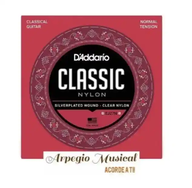 Las cuerdas de guitarra clásica de nylon EJ27N de D'Addario son ideales para principiantes, estudiantes y profesionales por igual. Este conjunto de tensión normal contiene 3 agudos de nylon transparentes y 3 bajos enrollados de cobre plateado para el equilibrio óptimo de tono cálido y proyectante y duradero.