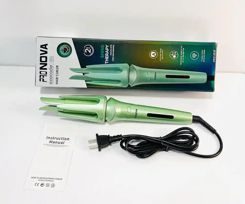 Tecnología de Infusión: El producto utiliza la tecnología "Shine Therapy" con infusión de aceite de aguacate y macadamia, lo cual ayuda a nutrir el cabello y aportar brillo. Beneficios para el Cabello: Esta combinación de ingredientes y tecnología iónica (ION PLUS) ayuda a restaurar la estructura molecular del cabello, devolviendo su humedad natural, aportando flexibilidad y eliminando el encrespamiento o frizz. Diseño de Seguridad: Cuenta con un diseño "Anti-scald" (anti-quemaduras) para alta seguridad durante su uso, como se indica en la caja del producto. Iones Negativos: Incorpora iones negativos ("Moisturizing negative ions do not damage hair") para evitar daños en el cabello durante el rizado. Tipo de Producto: Es un rizador automático diseñado para crear rizos de manera sencilla.