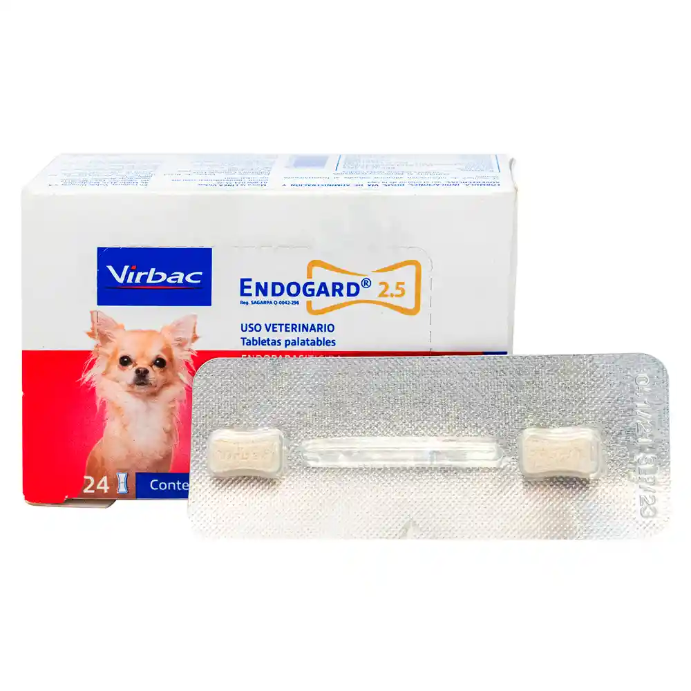 Endogard 2.5 es un antiparasitario interno de amplio espectro para perros (especialmente razas pequeñas), diseñado para tratar y controlar nematodos (gusanos redondos), céstodos (tenias), giardias y prevenir el gusano del corazón. Su dosis es de 1 tableta por cada 2.5 kg de peso, es palatable y apto para cachorros desde la cuarta semana.