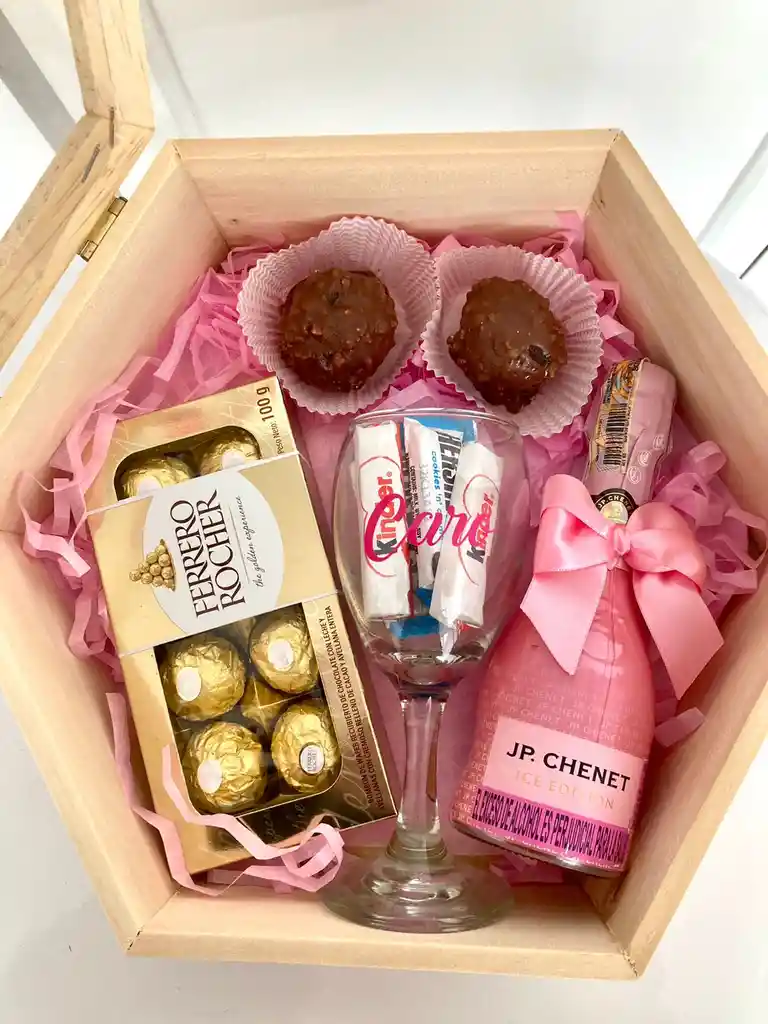 trufas de chococolate, acompañado de vino espumoso jp chenet, ferrero roche, copa personalizada, chocolates hershies