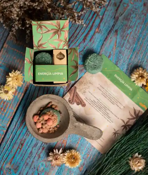 Artesanal Hecho a mano Composición: 4 carbones vegetales, Perlas aromáticas, Hierbas aromáticas, Resinas naturales, Aceites esenciales y aglutinante natural. Uso: para defumar Medida caja: 5,5 x 5,5 x 5,5 Composición: La mirra transmite bienestar, el del anís receptividad, el de la canela que atrae la buena fortuna y el del sándalo que desbloquea para fluir con la Energía Limpia.
