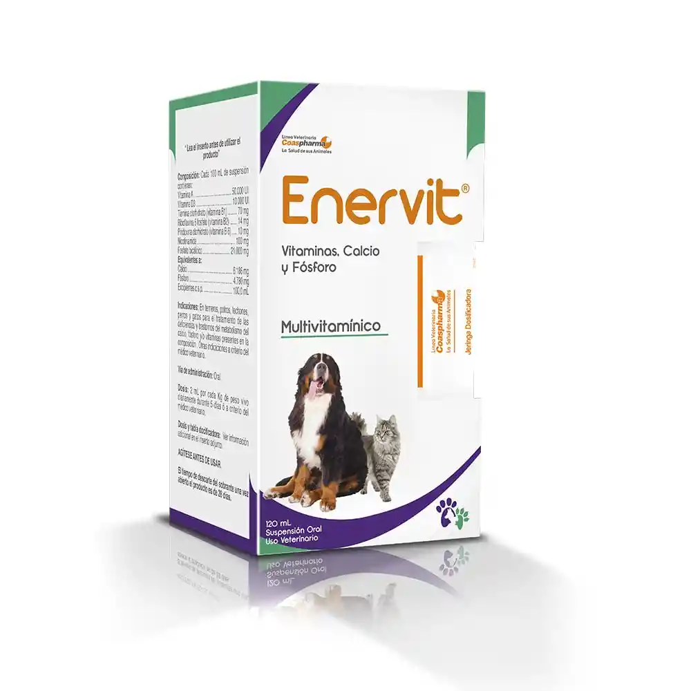 Suspensión oral de vitaminas y minerales para terneros, potros, lechones, perros y gatos con deficiencias y trastornos del metabolismo en calcio, fósforo y/o vitaminas, debes administrar vía oral 2 ml por cada kg de peso vivo diariamente durante 5 días o a criterio del médico veterinario.