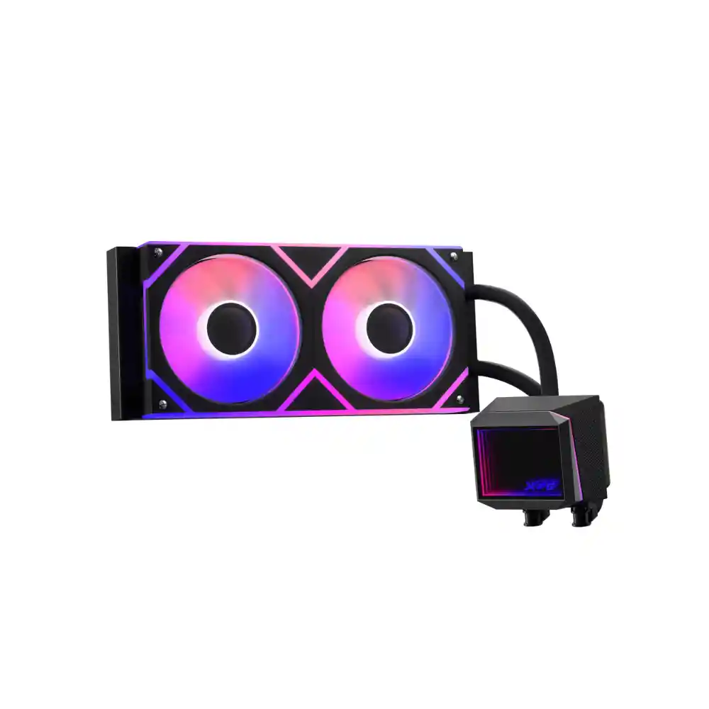 XPG LEVANTE II 240, Negro, diseño de Espejo Infinito, Velocidad: 800-2000 RPM, Ruido: 29dBA, Flujo de Aire: 58 CFM, TDP 270W a 82℃, Rodamiento Hidráulico, Socket: Intel (LGA 1851/1700/1200/115x), AMD (AM5/AM4/AM3), 5 Años de Garantía