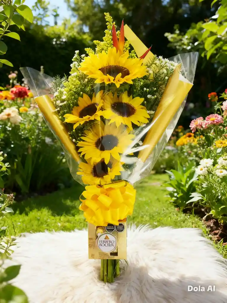 HERMOSO ENGALANADO DE GIRASOLES CON FERRERO X 4 UNIDADES