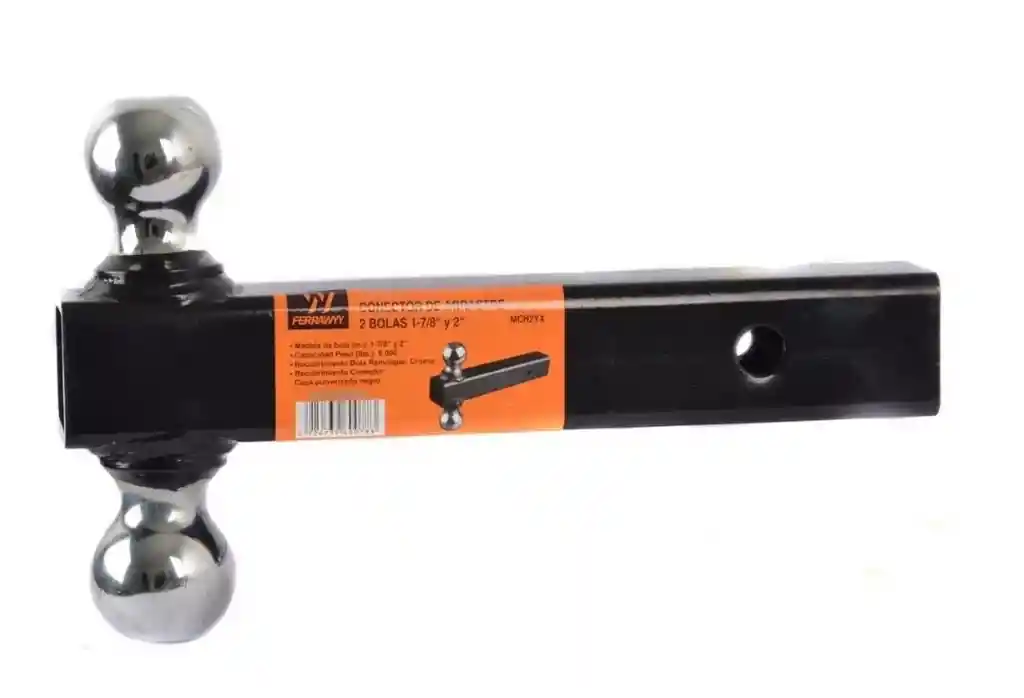Descripción • Medida: 30.5 cm • Peso: 3.4 kg • Capacidad máxima: 6000 Libras • Bolas de 1. 7/8" y receptor de 2" x 2" ¿? PREGUNTAS FRECUENTES ¿? ¿Puedo pagar contra entrega? No es posible. ¿Dónde puedo recoger el producto? El producto se envía a la dirección que tú nos proporciones. Esta dirección la escribes a la hora de comprar. ¿Tiene algún costo el envío? Si. El envío varía según la ciudad dentro del territorio nacional. ¿Tiene disponibilidad del producto? Si el producto que estás buscando lo ves en el portal, garantizamos la disponibilidad. De lo contrario no lo publicamos. ¿Qué garantía tiene el producto? La vigencia depende de la línea del producto. No cubre garantía por el mal uso, abuso o instalación indebida. Si desconoce el modo de instalación, manipulación o presenta problemas con la herramienta, debe consultarnos desde la mensajería de la compra o con un técnico instalador profesional en el tema. ¿Qué horarios de atención tienen? Lunes a Viernes de 9:00 am a 5:00 pm NO TRABAJAMOS DOMINGOS NI FESTIVOS. NOTA: LA HERRAMIENTA SE DESPACHARA EL MISMO DIA SI SE CONFIRMA EL PAGO ANTES DE LAS 1 PM.