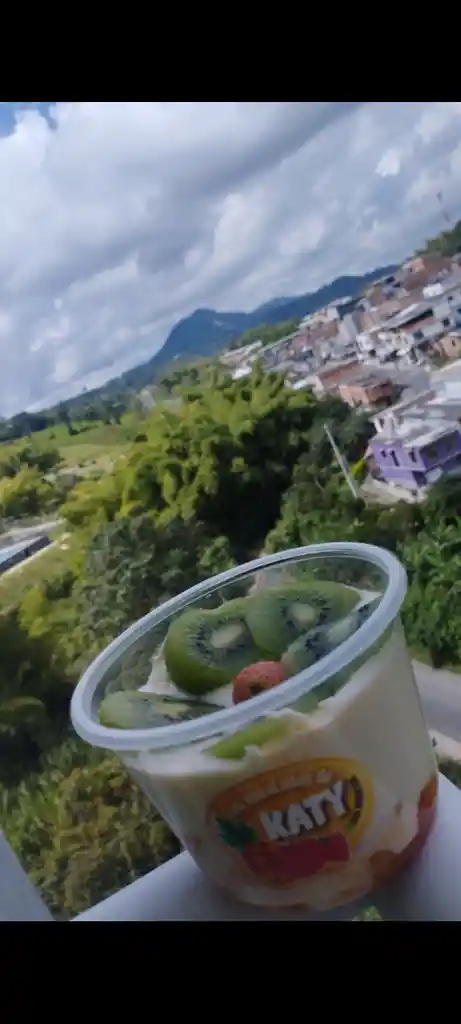Ensalada de frutas con deliciosa crema de la casa, queso y de kiwi.