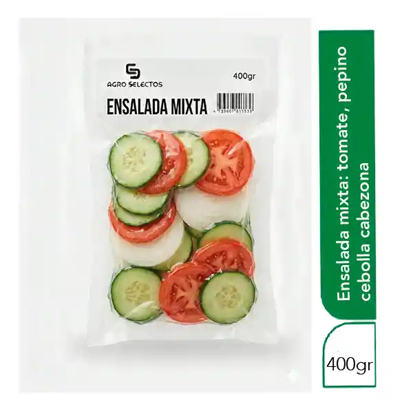 Ensalada mixta al vacío : tomate en rodajas, pepino en rodajas, cebolla cabezona en rodajas. Ahorra tiempo en tu cocina.
