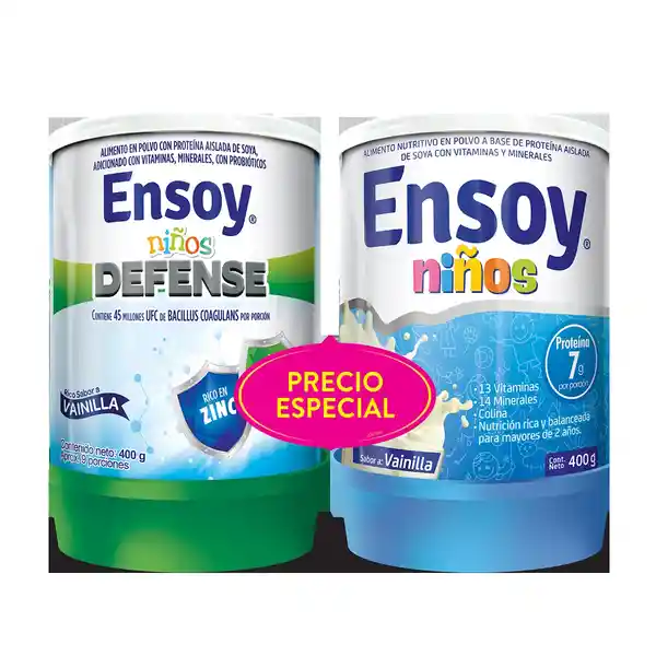 Contiene 2 Unidades de 400 g c/u. Bebida en Polvo Infantil Niños Defense 400 g + Bebida en Polvo Vainilla 400 g. Precio Especial.