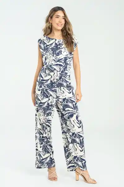 Largo en Chalis Estampado Escote Barco Con Detalle de Prense en Hombro Elástico en Cintura Bolsillos Laterales Pierna Recta.
