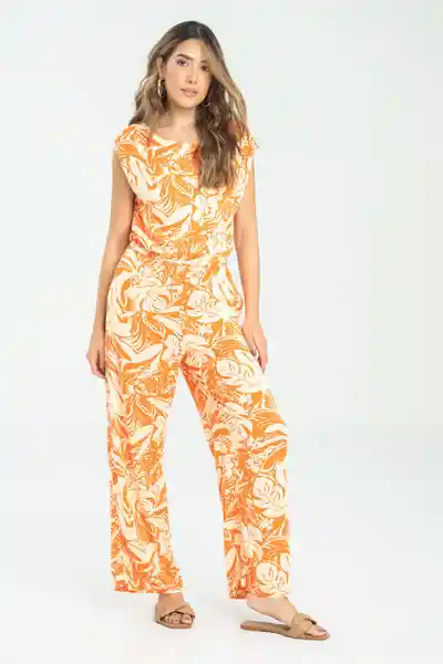 Largo en Chalis Estampado Escote Barco Con Detalle de Prense en Hombro Elástico en Cintura Bolsillos Laterales Pierna Recta.