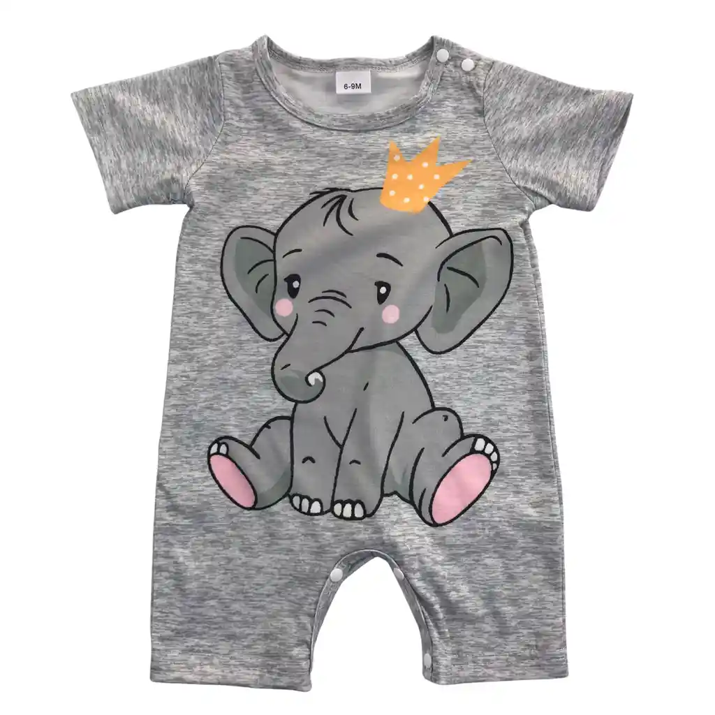 Enterizo para bebé de 6 a 9 meses en tono gris jaspeado con adorable diseño de elefante con corona, ideal para un look tierno y moderno. Confeccionado en tela suave y cómoda, perfecta para el uso diario y delicada con la piel del bebé. Cuenta con broches en el hombro y en la parte inferior que facilitan el cambio de pañal y el vestir al bebé sin complicaciones. Su diseño fresco y práctico permite libertad de movimiento durante el juego o el descanso. Ideal para el día a día, salidas familiares o como regalo especial
