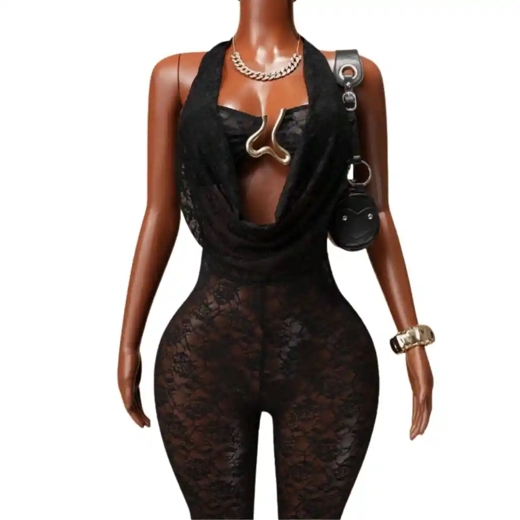 Diseño entero (una sola pieza) Encaje floral semi-transparente Escote profundo drapeado Ajuste ceñido al cuerpo Estilo sofisticado y sensual Perfecto para combinar con accesorios llamativos y tacones altos. Ideal para quienes buscan una prenda impactante y moderna. TALLA S
