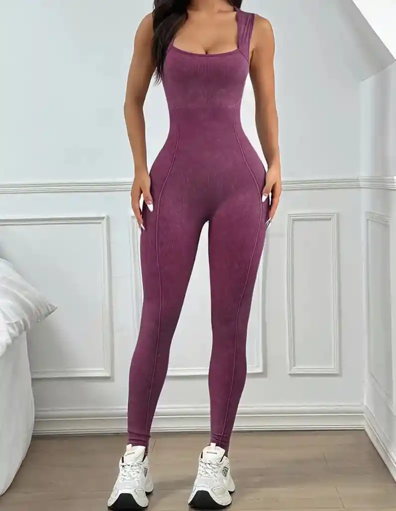 Enterizo deportivo para dama, material acanalado, color vinotinto, talla L