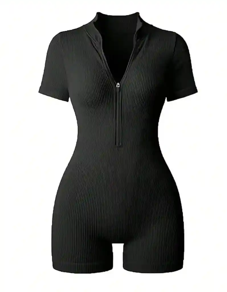 Enterizo deportivo dama, material acanalado ligero, color negro, talla M