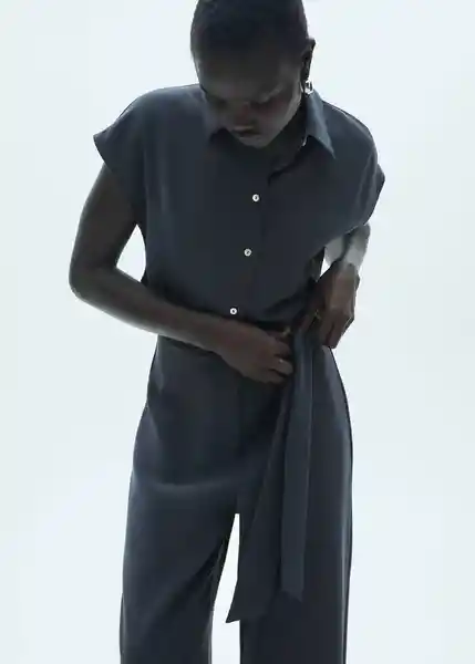 Cierre de Lazo Lateral, Cierre Delantero Con Botones, Cuello Camisero, Diseño Largo, Diseño Recto, Disponible Plus, la Modelo Mide 175 cm y Lleva Una Talla S, Manga Corta, Tejido Fluido - 77095672_54.