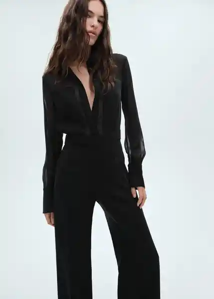 Cierre de Botones Oculto en la Parte Delantera, Colección Fiesta y Ceremonia, Cuello Camisero, Diseño Largo, Diseño Recto, la Modelo Mide 1, 78 y Lleva Una Talla S/36, Manga Larga Con Puños Abotonados, Tejido Fluido, Tejido Semitransparente - 77068265_99.