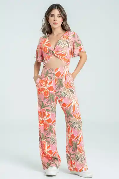 Largo en Chalis Fantasía Estampado Escote en V Con Anudado y Abertura Frontal Espalda Con Abertura y Botón Cierre en Costado Bolsillos Bota Recta.