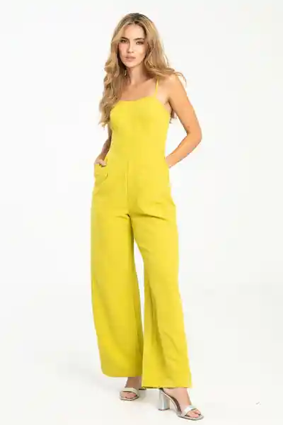 Largo de Tiras en Tafetán Fondo Entero Escote en V Ajusta en Busto y Cintura Bolsillos Laterales Pierna Amplia.