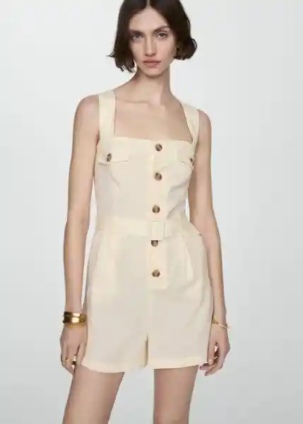 Cierre de Botones en la Parte Delantera Desmontable Diseño Corto Diseño Recto Dos Bolsillos de Solapa en la Parte Delantera Escote Cuadrado Tejido Mezcla de Algodón Tirantes Anchos Trabillas - 67088637_05.