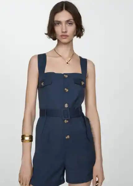 Cierre de Botones en la Parte Delantera Desmontable Diseño Corto Diseño Recto Dos Bolsillos de Solapa en la Parte Delantera Escote Cuadrado Tejido Mezcla de Algodón Tirantes Anchos Trabillas - 67088637_69.