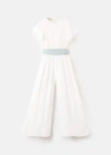 Cierre de Botones Cinta en la Cintura Con Cierre de Lazo Cinturón Plisado Colección Fiesta y Eventos Con Textura Cuello Redondo Diseño Largo el Largo Del Mono es de 109 cm Forro Interior la Modelo Mide 145 cm y Lleva la Talla 10 Tejido Efecto Bambula Volantes en Las Mangas - 27073733_01.