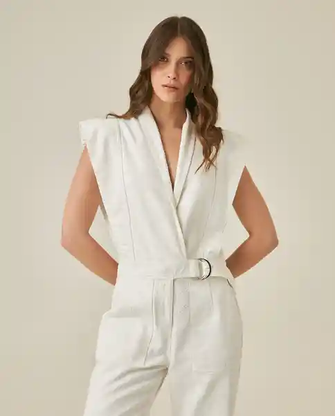 Enterizo Femenino Sin Mangas Manga Sisa en Algodón 100%. Tela Non-Stretch. Color Crudo. Cuello Tipo Smoking Cruzado. Hombreras Estructuradas Que Aportan Silueta Marcada. Cinturón Del Mismo Tejido Con Hebilla Forrada Para Ajustar Cintura. Bolsillos Frontales de Parche. Pernera Recta. Construcción Con Acabado Minimalista Elegante Moderno. Sin Elongación (Algodón Puro Non-Stretch). Ean- 471H100Cru134403 Plu- 1111133254570.