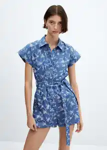 Bordado de Flores Cierre Delantero Con Botones Cinta en la Cintura Con Cierre de Lazo Cuello Camisero Diseño Corto Dos Bolsillos Laterales Manga Corta Tejido Mezcla de Algodón - 67070427_52.