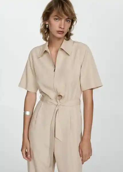 Bolsillos Laterales, Cierre de Cremallera en la Parte Delantera, Cuello Camisero, Diseño Largo, Diseño Recto, Lazo Ajustable en la Cintura, Manga Corta, Tejido Mezcla de Lino y Lyocell - 77074770_08.