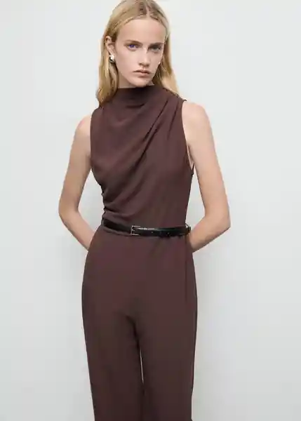 Cierre de Cremallera en la Parte Posterior Cinturón Ajustable Cuello Drapeado Cuello Redondo Diseño Largo Disponible Plus Sin Mangas Tirantes Anchos - 17981260_32.
