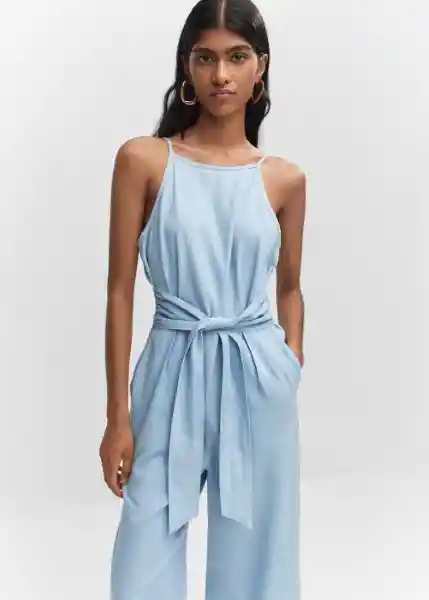 Cierre de Cremallera en la Parte Posterior Diseño Crop Diseño Recto Dos Bolsillos Laterales Lazo a la Cintura Sin Mangas Tejido 100% Algodón Tirantes Finos - 57074010_Tc.