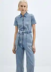 Cierre de Cremallera Cuello Camisero Diseño Largo Diseño Recto Dos Bolsillos de Parche en la Parte Posterior Dos Bolsillos de Parche Laterales Lazo Desmontable a la Cintura Manga Corta Tejido de Algodón Estilo Tejano Vaquero Trabillas - 67096327_Tc.