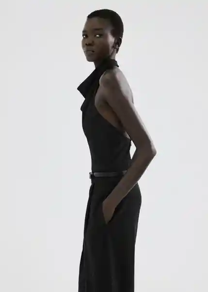 Cierre de Botón en el Cuello Cierre Trasero Cuello Halter Diseño Combinado Diseño Largo Diseño Recto Dos Bolsillos Laterales Exclusivo Online Sin Mangas Tirantes Anchos Trabillas - 27085831_99.