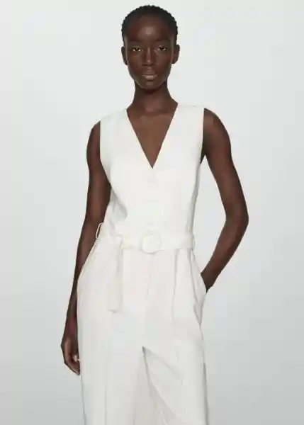 Cierre Delantero Con Botones Ajustable Cuello Pico Detalle de Pinzas Diseño Largo Diseño Recto Forro Interior Sin Mangas Tejido Fluido Tirantes Anchos Trabillas - 67068639_02.