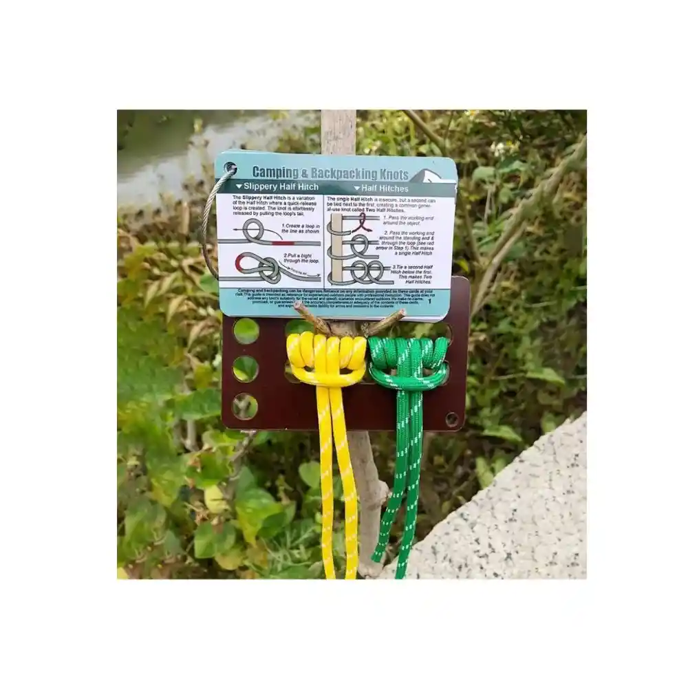Lleva tu habilidad al siguiente nivel con este juego de tablero de entrenamiento de nudos. Perfecto para camping, scouting, mochilismo, pesca y supervivencia, incluye todo lo que necesitas para aprender, practicar y dominar los nudos más útiles al aire libre. Tablero de entrenamiento para practicar de forma práctica y didáctica Juego de tarjetas de referencia rápida (12 nudos esenciales) en formato de bolsillo Portátil y compacto, ideal para llevar en tu mochila de viaje Bucle de alambre resistente, mantiene las tarjetas organizadas y a mano Diseñado para aventureros, scouts, campistas y amantes de la naturaleza Con este kit podrás aprender nudos básicos y avanzados para asegurar tu equipo, montar campamentos, improvisar reparaciones y desenvolverte en cualquier situación outdoor.