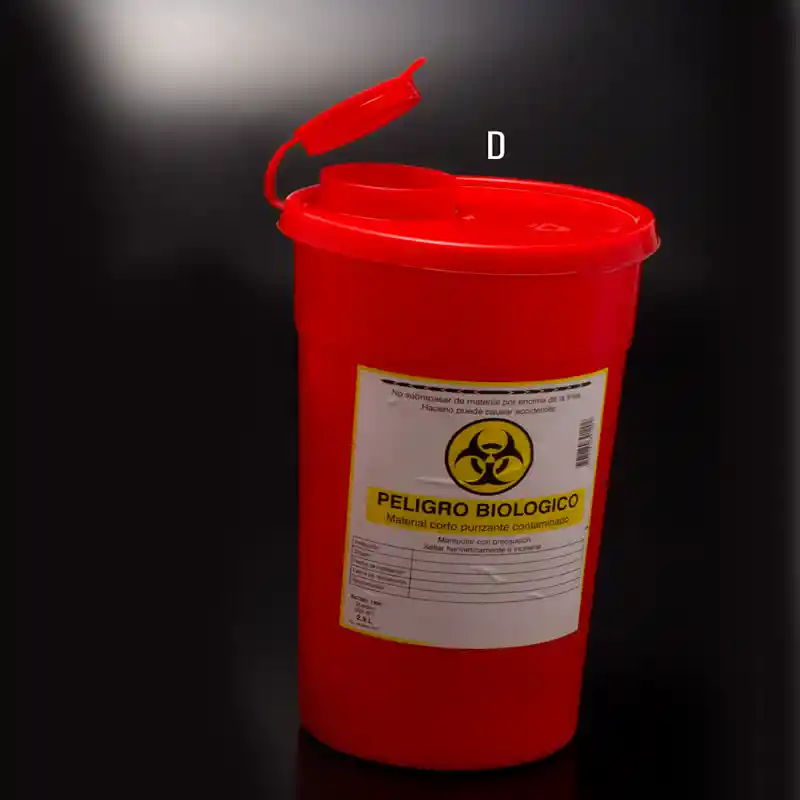 Descripción Guardián recolector de agujas, y material cortopunzante, Para uso medico y en Barberías. Fabricados en polipropileno de alta densidad u otro polímero que no contenga PVC. Con tapa ajustable para que al cerrarse queden completamente herméticos. Beneficios: * Para desecho de agujas, hojas de bisturí, cuchillas y demás insumos o elementos cortopunzantes en hospitales, peluquerías y laboratorios. * Guardián de seguridad para prevenir incidentes o accidentes de trabajo durante el manejo y disposición final de cortopunzantes. TAMAÑO: * 1 Lt. (Pqño) MAS: * Identificadores de Seguridad * Acceso para Agujas y Cuchillas (Tipo Dorco/Minora) * Color Rojo * Entregas el mismo día (Bogota)