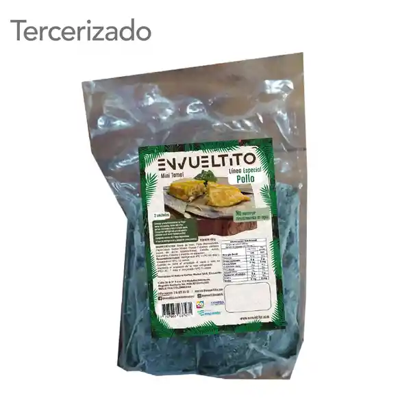 2 Unidades Mini tamal Masa de maíz, Pollo desmechado, Papa criolla, Queso hilado, Queso 7 cueros,contiene trazas de leche (champiñones, Cebolla Junca, Zanahoria, Cilantro y mezcla de especias)
