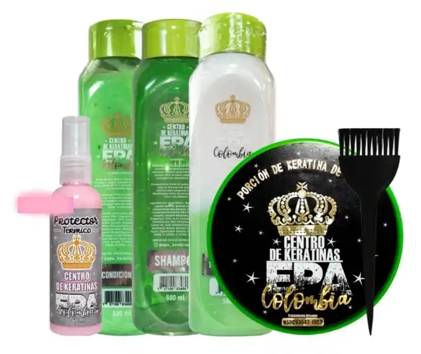 1 Porción de Keratina de 200ml 1 Acondicionador de 500ml 1 Shampoo de 500ml 1 Termo protector de 500ml 1 Spray protector térmico de 60ml 1 Brocha