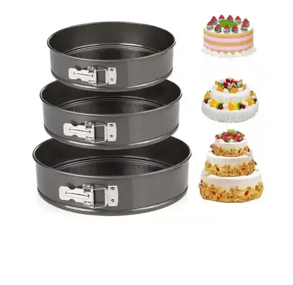 Set x3 Moldes Desmontables Teflón Torta Redondo Repostería Características: Tres moldes desmontables de teflón para repostería Medidas Diámetros: 18cm, 20cm , 22cm Diámetro x 6,5cm Alto Material: Acero al carbón antiadherente Color: Negro